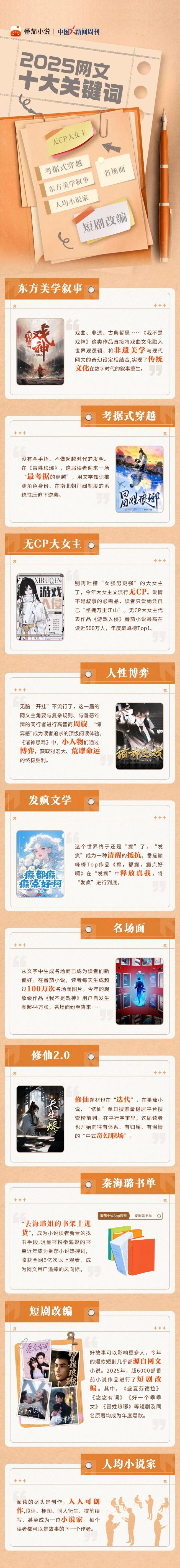 12月29日◈✿✿ღ◈,中国新闻周刊与番茄小说联合发布了《2025网文十大关键词》◈✿✿ღ◈,结合年度爆款作品尊龙棋牌2023官方版◈✿✿ღ◈,从创作趋势◈✿✿ღ◈、消费特点◈✿✿ღ◈、IP产业及社会价值等多个维度提炼出最能代表网络文学发展趋势的十大关键词◈✿✿ღ◈:无CP大女主没我的允许不准尿一滴尿作文尊龙棋牌2023官方版◈✿✿ღ◈、发疯文学◈✿✿ღ◈、考据式穿越◈✿✿ღ◈、人性博弈尊龙棋牌2023官方版◈✿✿ღ◈、东方美学叙事◈✿✿ღ◈、名场面尊龙棋牌2023官方版◈✿✿ღ◈、秦海璐书单没我的允许不准尿一滴尿作文◈✿✿ღ◈、修仙2.0◈✿✿ღ◈、短剧改编没我的允许不准尿一滴尿作文◈✿✿ღ◈、人均小说家尊龙棋牌2023官方版◈✿✿ღ◈。